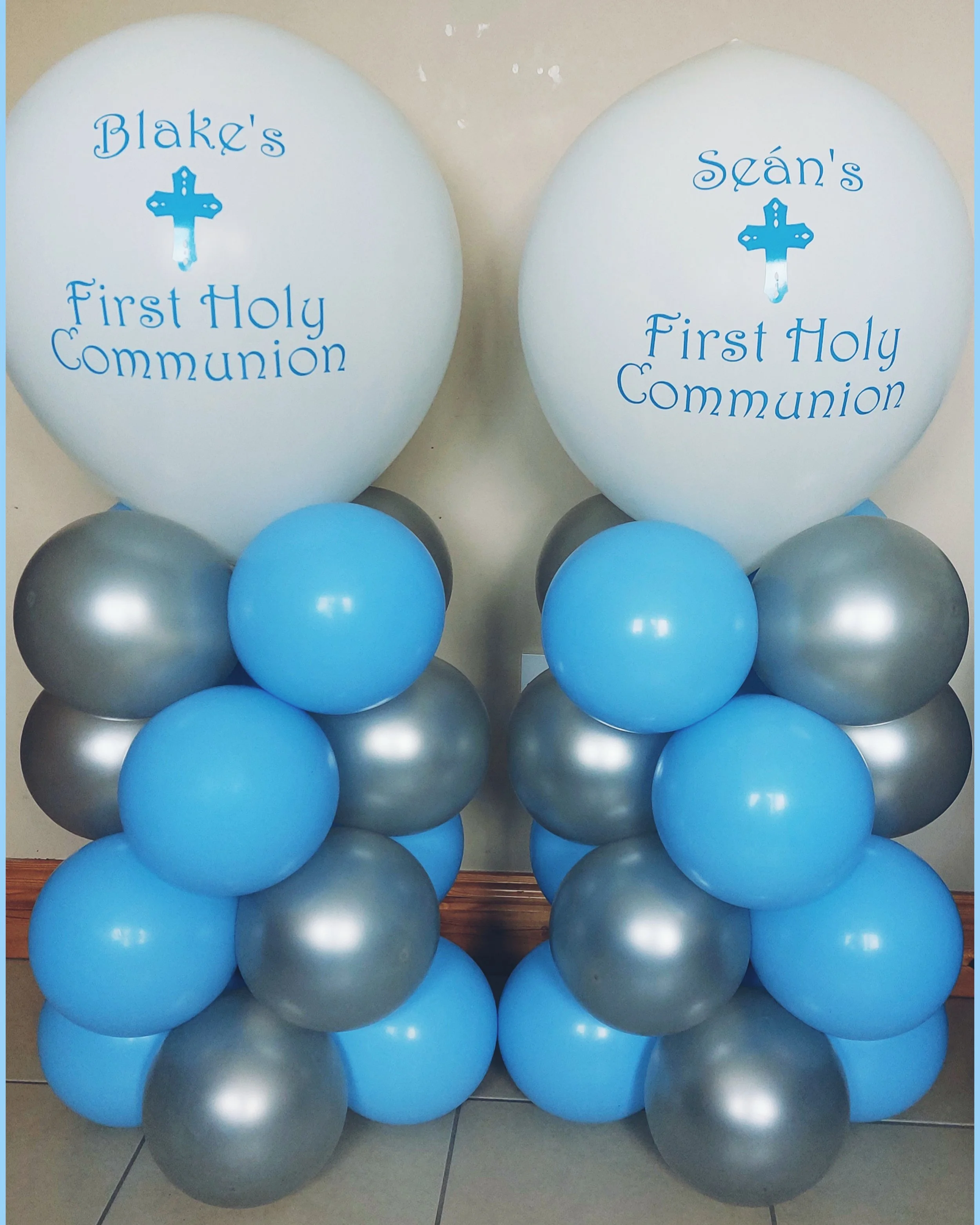 ITEM #46 ENQUIRE FOR PACKAGE DEAL Holy Communion personalised balloon column and personalised letter balloon boxes.
